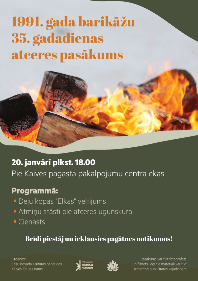 Otrdien, 20. janvārī, plkst. 18.00 pie Kaives pagasta pakalpojumu centra ēkas notiks barikāžu 35. gadadienai veltīts pasākums.