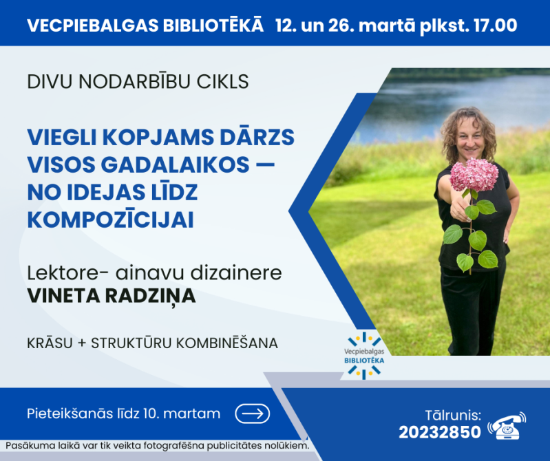 Vecpiebalgas bibliotēka aicina apmeklēt divu nodarbību ciklu "Viegli kopjams dārzs visos gadalaikos – no idejas līdz kompozīcijai".
