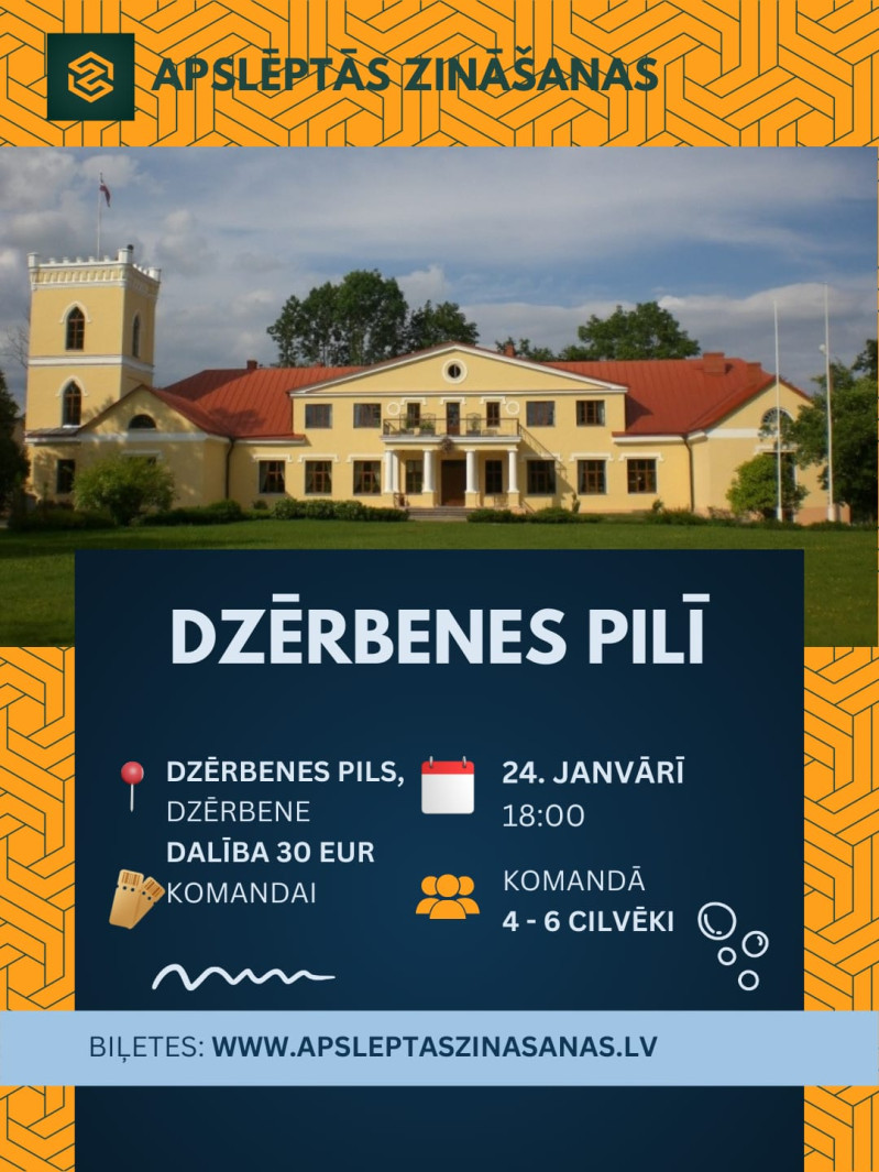 Sestdien, 24. janvārī, plkst. 18.00 Dzērbenes pilī norisināsies erudīcijas spēle "Apslēptās zināšanas".