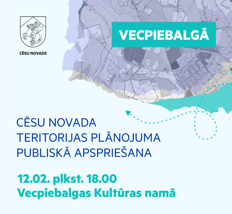 Aicinām Vecpiebalgas apvienības iedzīvotājus piedalīties publiskās apspriešanas sanāksmē par Cēsu novada jauno, vienoto teritorijas plānojumu, kas turpmāk noteiks, kur un kā novadā iespējama apbūve, kur saglabājamas ainavas un dabas teritorijas un kur tiek plānota uzņēmējdarbības attīstība.