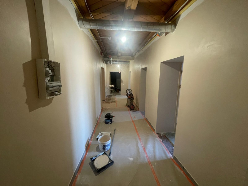 Remontdarbu laikā tiek izbūvēta santehnika, nodrošinot izlietņu uzstādīšanu nepieciešamajās vietās, veikta grīdu līdzināšana, kā arī remontdarbi sanitārajā mezglā, gaitenī un sešās ēkas telpās.