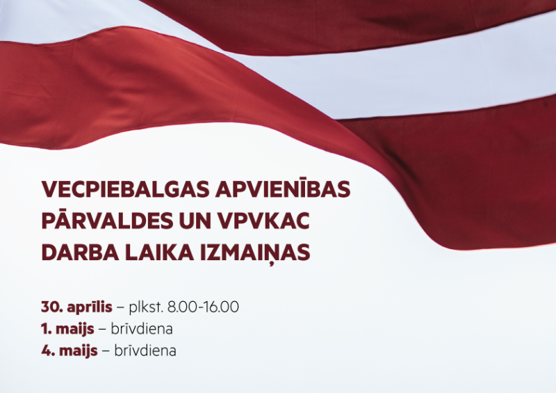 Informējam, ka svētku laikā mainīts Vecpiebalgas apvienības pārvaldes un Valsts un pašvaldību vienotā klientu apkalpošanas centra (VPVKAC) darba laiks: