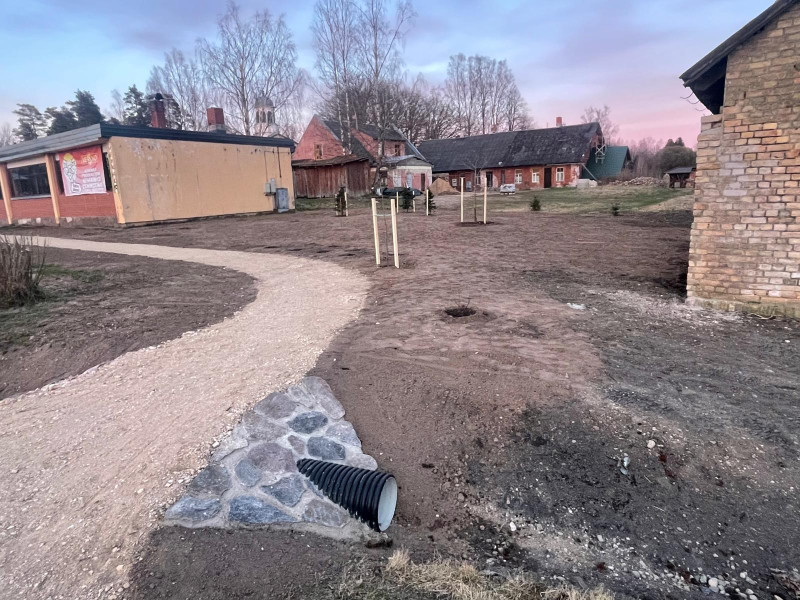 Vienlaikus Dzērbenē uzsākta centra sakārtošana. Lai nodrošinātu ērtāku pārvietošanos gājējiem un uzlabotu infrastruktūru, atjaunots tiltiņš, tiek sakārtota ūdens novadīšanas sistēma, kā arī izveidots jauns grants gājēju celiņš.