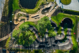 Foto: We Build Parks būvētā velotrase Rīgas centrā