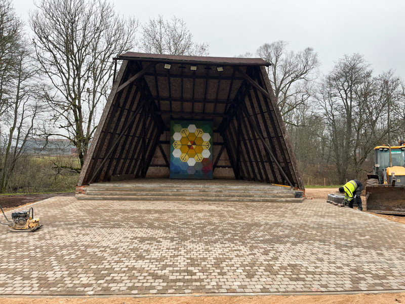 Darbu gaitā atjaunota estrādes grīda ar bruģakmeni, atjaunots ceļa un stāvlaukuma segums izbūvēts gājēju celiņš.