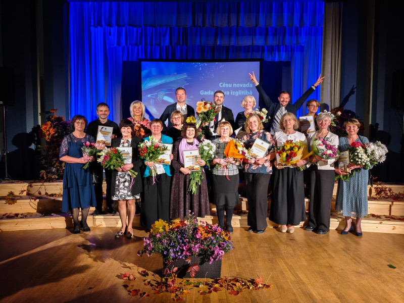 Šodien, 8. oktobrī, Cēsu Valsts Ģimnāzijā notika Cēsu novada izglītības darbinieku un atbalstītāju godināšanas pasākums, kurā tika pasniegtas nominācijas par nozīmīgu ieguldījumu izglītības jomā. Pasākumā godināja skolotāju, vadītāju, kolektīvu un labvēļu darbu.