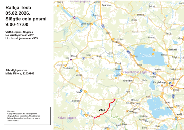 Biedrība "Millers motorsport" informē, ka 5. februārī no plkst. 9.00 līdz 17.00 Kaives pagastā notiks rallija auto treniņi.