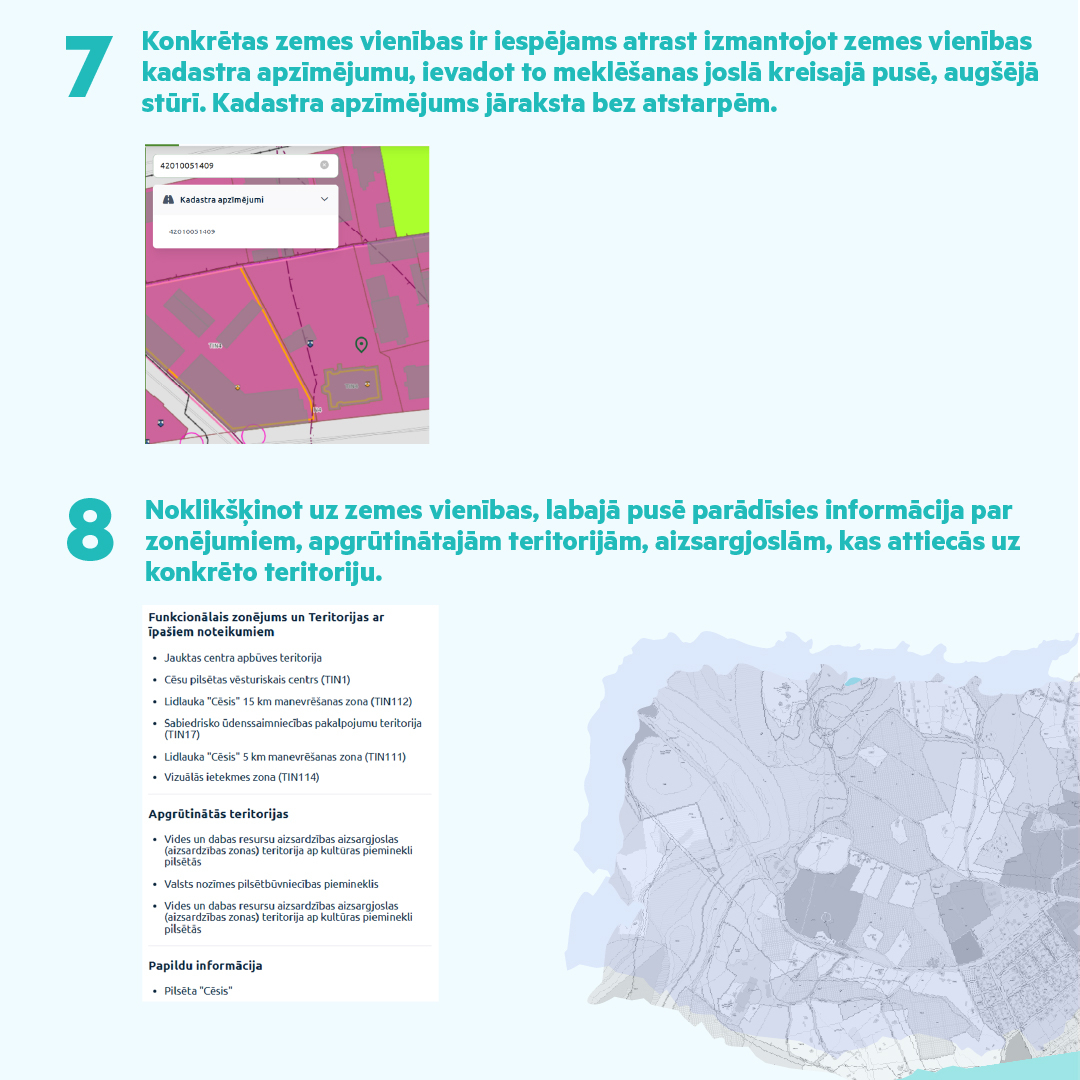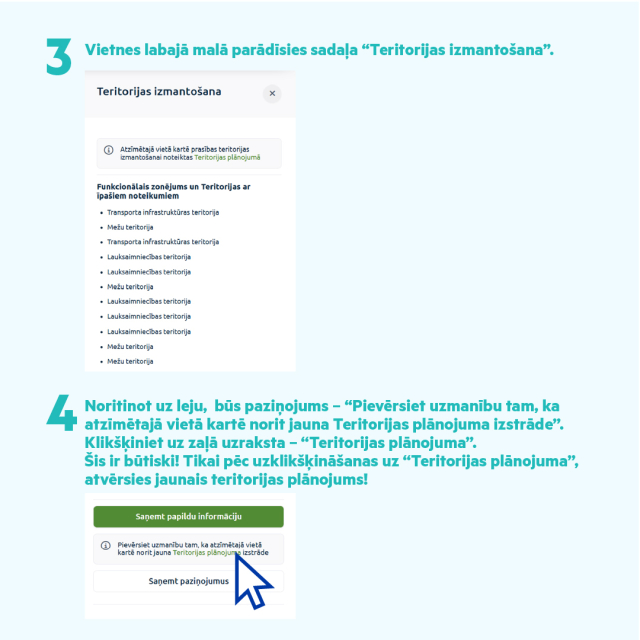 Ar visiem teritorijas plānojuma materiāliem iespējams iepazīties GeoLatvija portālā geolatvija.lv (skaties pamācību, kā atrast un apskatīt plānojumu).
